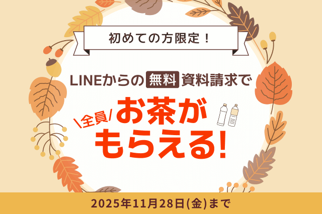終了しました【初めての方限定!】LINEからの無料資料請求で全員にお茶プレゼント!